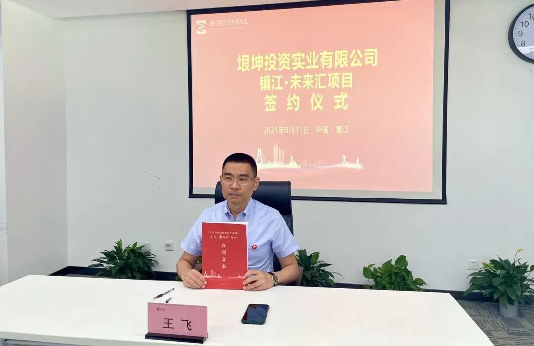 8月31日上午,2021年镇江市重点产业项目年中“云签约”活动顺利举行,垠坤集团执行总裁王飞参与活动,就“垠坤·未来汇(镇江)产业园”项目进行签约。