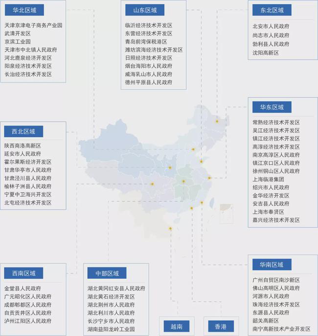 ▲ 多年来,谷川联行与全国多个区域的政府、园区保持着深度合作关系,直抵产业发展的最前线。(图为谷川联行的部分重点合作案例)