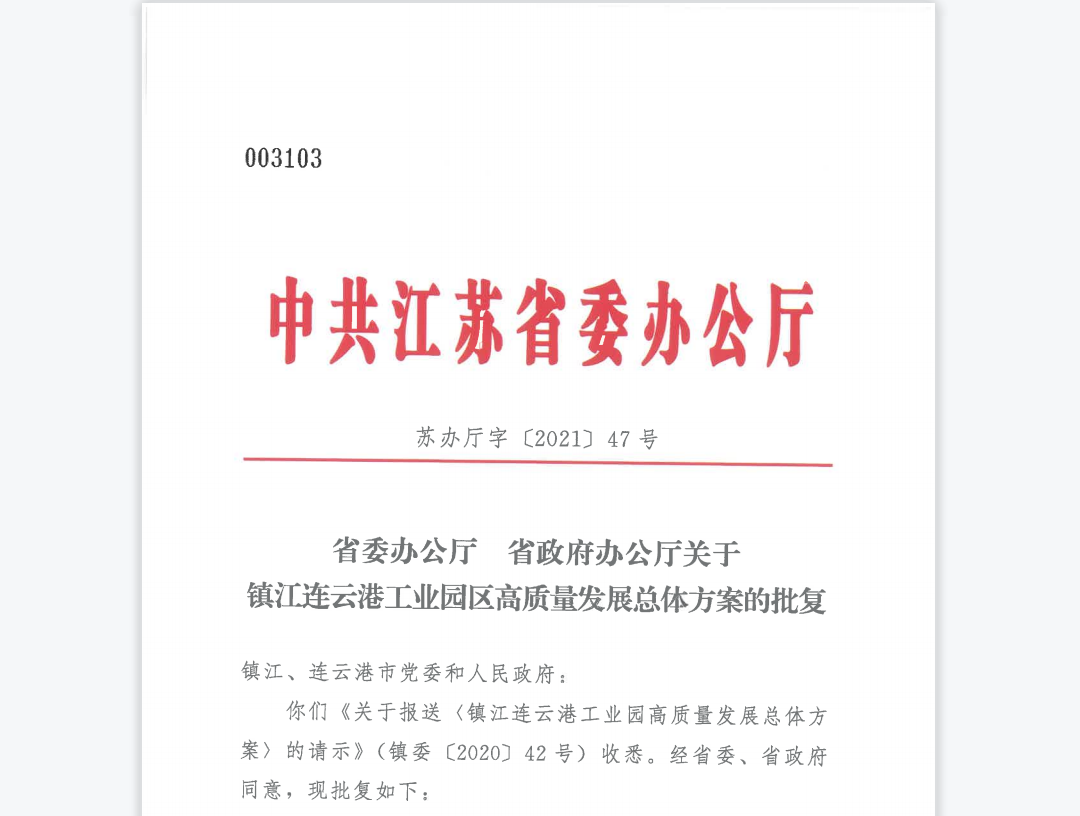 近日,省委办公厅、省政府办公厅正式批复《镇江连云港工业园区高质量发展总体方案》(以下简称《方案》),要求两地按照省委、省政府关于推动南北共建园区高质量发展的部署要求,立足新发展阶段,贯彻新发展理念,构建新发展格局,以改革开放为动力,以先进产业为根本,以机制创新为保障,充分发挥镇江连云港两地积极性和互补优势,突出主导产业定位、促进集约集聚发展、守牢安全发展底线,努力建成全省南北优势互补、共建共享的创新示范区。