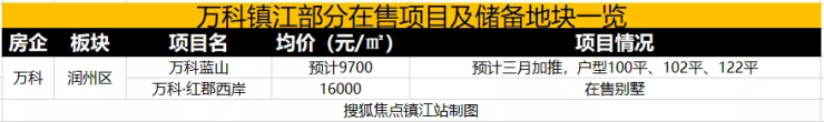 据统计,目前万科在售项目约两家,万科蓝山和万科·红郡西岸。去年,万科在镇江已没有储备地块,土地不足,促使万科寻求更多的合作开发。