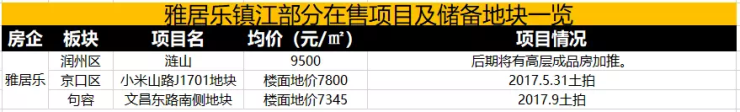雅居乐目前在镇江的在售项目为润州区的雅居乐涟山项目,储备地块约有两个,分别位于京口区和句容。