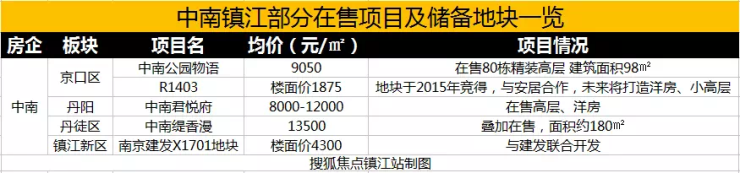据统计,中南还有几块储备地块,在前不久刚出规划的京口区R1403地块,该地块于2015年竞得,与安居联合开发,未来将打造洋房、小高层产品,除此之外,去年年底,南京建发拿下的新区X1701地块,中南也加入,联合开发。