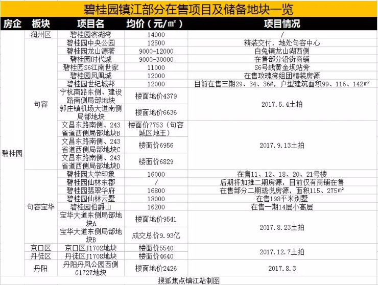碧桂园是众多房企中,在镇江储备地块和在售项目最多的房企,粗略计算约有20多个,遍及各大板块,主要集中的句容,其中大部分项目在宝华,可见碧桂园主要还是针对南京的外溢客,除了目前宝华在售的5个项目外,在去年8月,碧桂园又拿下宝华大道东侧的两幅地块。