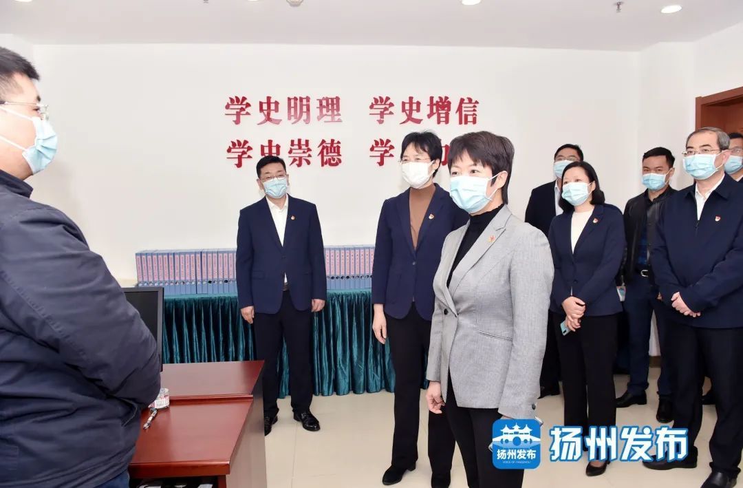 11月20日,扬州市委书记张宝娟到市委党史学习教育领导小组办公室检查指导党史学习教育开展工作,走访中央和省驻扬新闻单位,调研扬州宣传思想工作。