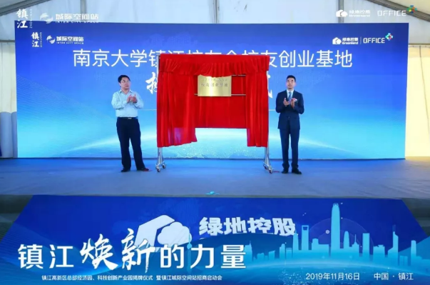 发言结束后,绿地集团江苏事业部企业服务平台总监阚霖作为代表上台接受授牌,这标志着南京大学镇江校友会校友创业基地的正式在镇江城际空间站成立!