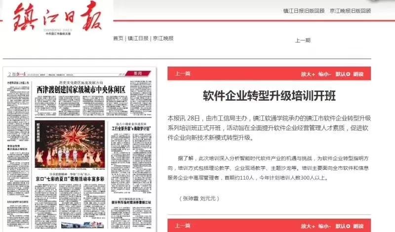 据了解,本次软件企业转型升级专题培训是镇江首届“企业课堂”,得到了政府领导及镇江软件和信息技术服务产业的高度关注和认可,吸引了镇江日报等多家媒体争相报道,成为引领镇江互联网经济发展的风向标。